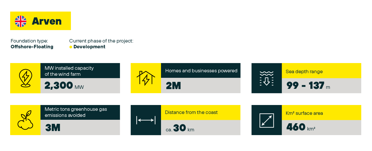 Arven is a 2.3 GW floating offshore wind development located to the east of the Shetland Islands. Through a 50-50 partnership between Ocean Winds and Mainstream Renewable Power, the Arven and the Arven South sites were awarded as part of the ScotWind leasing round in 2022. Arven is in its early planning scoping stage with offshore scoping completed in 2024 and onshore scoping consultation and submission expected in late 2025.
