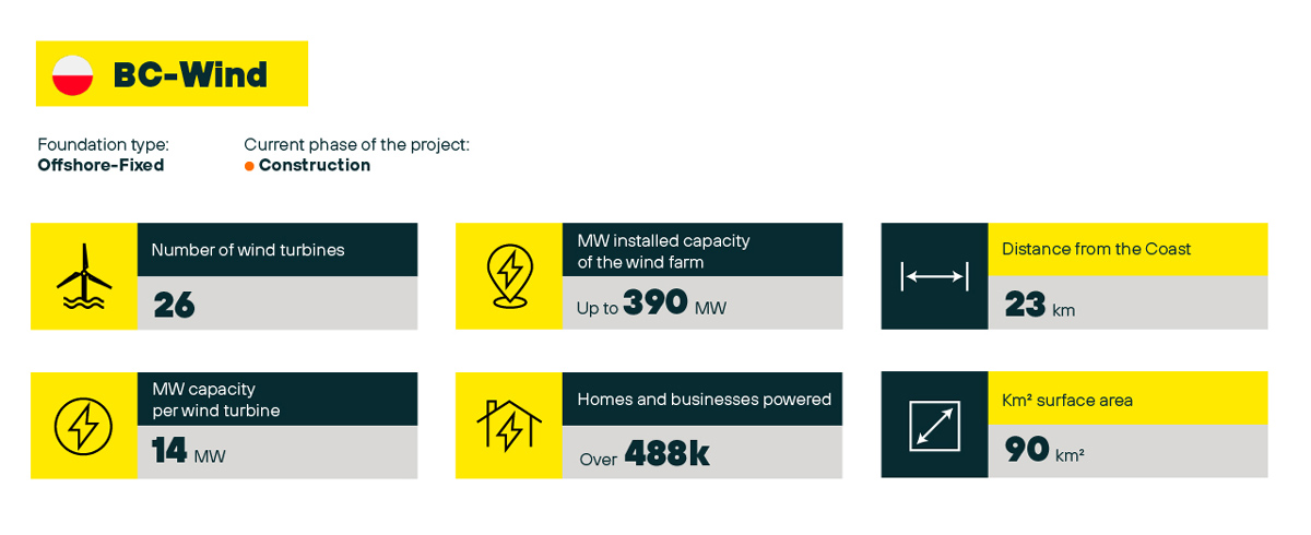 Located within Poland’s Baltic Sea Exclusive Economic Zone, approximately 23 kilometres offshore at an altitude north of the municipalities of Krokowa and Choczewo in the Pomeranian Province. These project sites encompass an area of 90.94 square kilometres and capacity of up to 500 MW, representing a substantial investment in renewable energy. In September 2020, the projects were granted grid connection conditions, followed by the signing of a grid connection agreement in March 2021. Subsequently, the project has completed Environmental Impact Assessment (EIA) surveys and in June 2021, the project received the right to a Contract for Difference (CfD) from the Energy Regulatory Office, making it one of the first offshore investments to be completed in Poland.